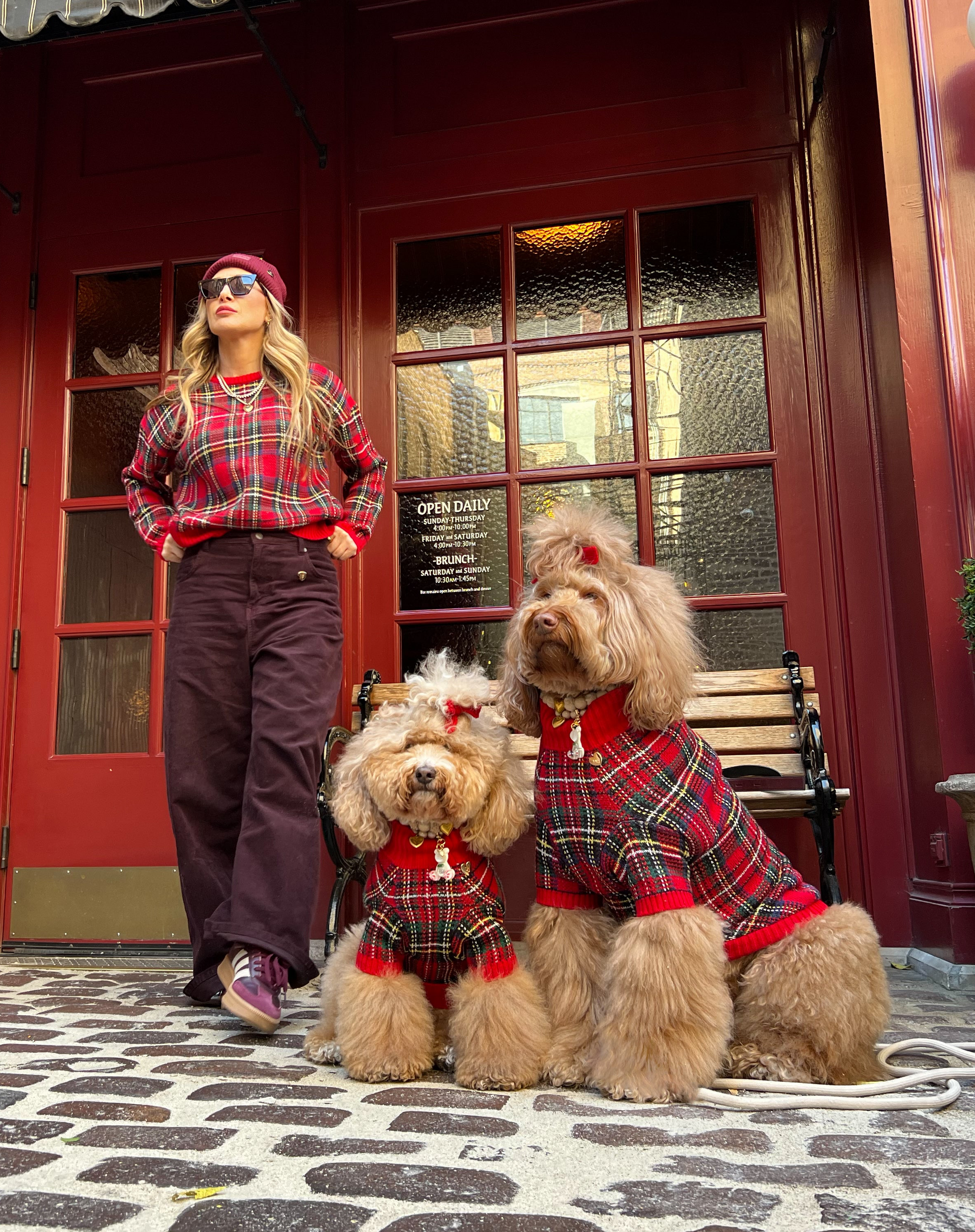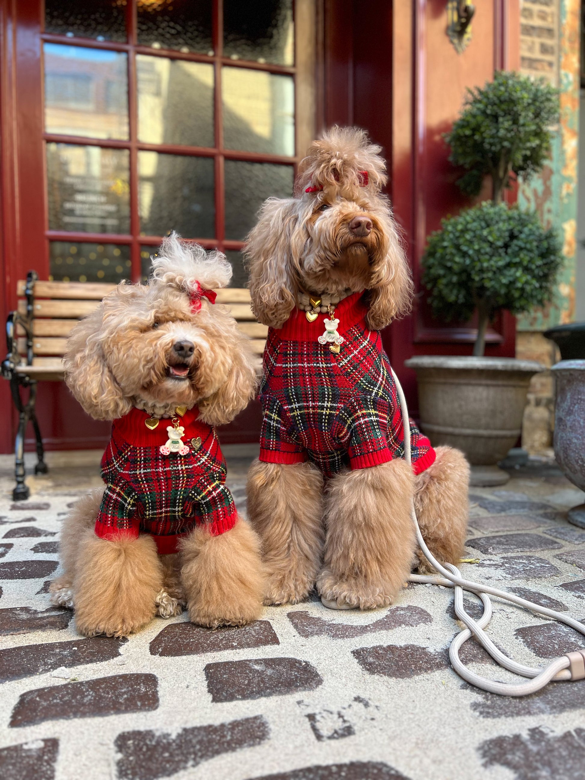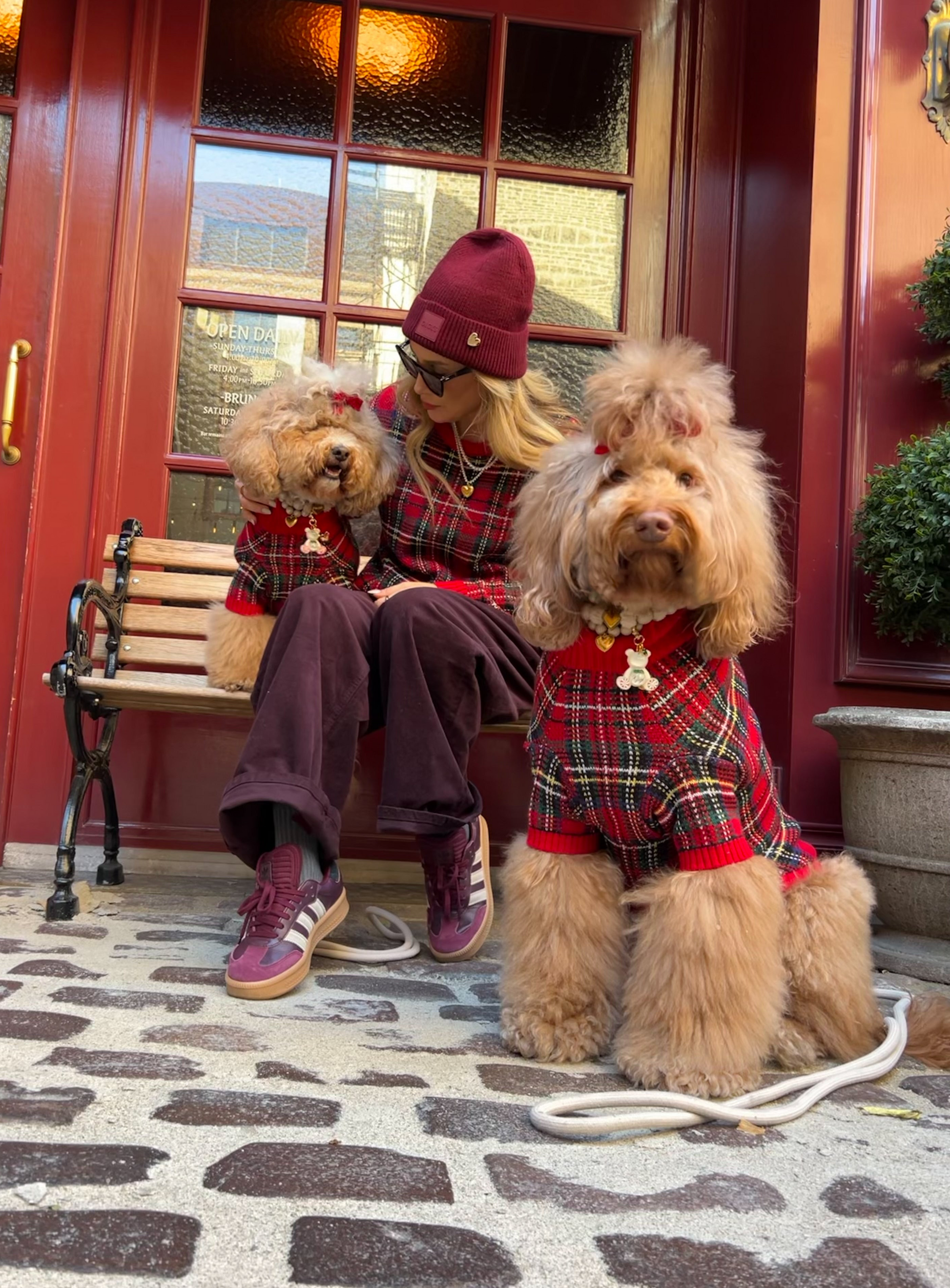 A classic, stylish, and timeless pairing bringing you the joy, warmth, and celebration of a true nostalgic holiday season. Crafted in rich red tartan woven with navy, green, and golden threads, both sweaters offer a festive yet refined look that feels soft, cozy, and easy to wear. Finished with thoughtful GIGI’S details, this matching set is a cozy statement of comfort and classic style, perfect for every shared winter moment.