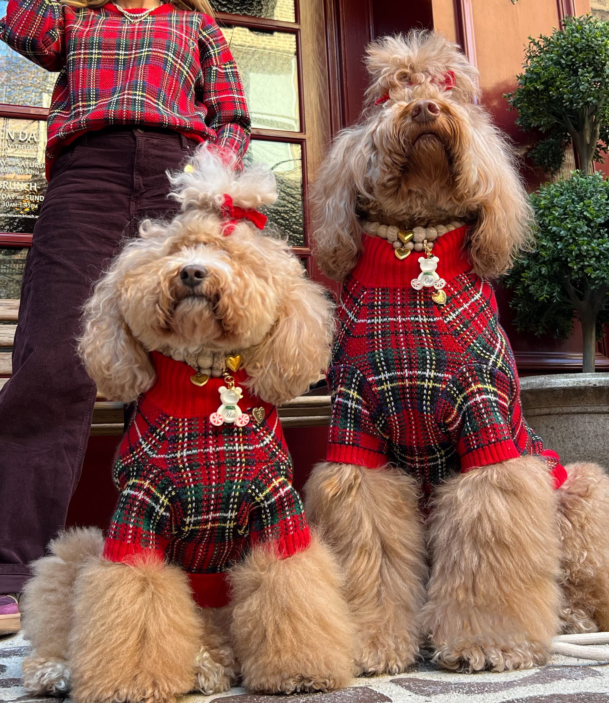 A celebration of timeless design and the feeling of home, the Tartanette Set captures the warmth, joy, and nostalgia of the holiday season through matching pieces crafted in rich red tartan woven with navy, green, and golden threads. Complete with the Merry Tartanette Bandanna, this set is a true reflection of elegance, comfort, and heart, made for the most cherished winter moments shared between dog and mom.